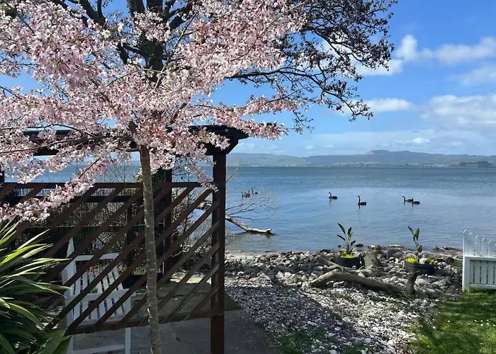 Esta casa de vacaciones se encuentra a 20 minutos en coche del aeropuerto Regional de Rotorua y a unos cuantos pasos de Pourakau Bay. Los huéspedes también pueden visitar el Lago Rotorua, situado a unos 10 minutos en coche.
